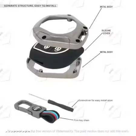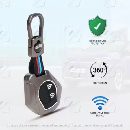 Stylish metal key cover providing 360-degree protection against drops, shocks, and scratches. Compatible with multiple Suzuki car models.