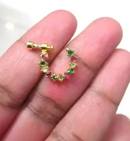 Multicolor gold-plated alloy nose pins with cubic zirconia stones. Perfect for ethnic and casual occasions.