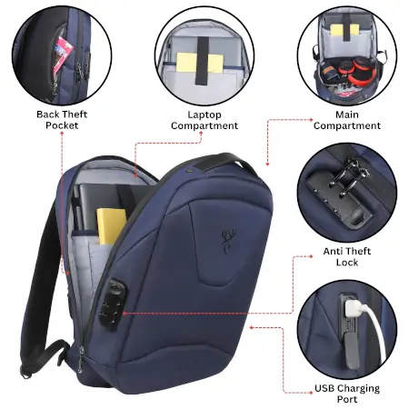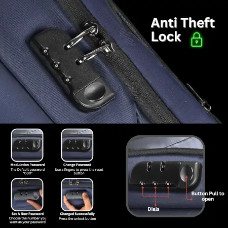 Stay organized and secure on the move with our anti-theft USB charging water-resistant laptop backpack. This sleek and durable backpack is designed to protect your belongings with hidden zipper closures and secret pockets. Easily charge your devices with the built-in USB port and internal charging cable. The water-resistant fabric keeps your laptop and essentials safe from light rain and spills. With ample space for a 15.6-inch laptop and smart organization features, this backpack is perfect for daily commutes or travel. Enjoy comfortable carrying with padded shoulder straps and a breathable back panel. Plus, rest easy with a 12-month warranty for added peace of mind.