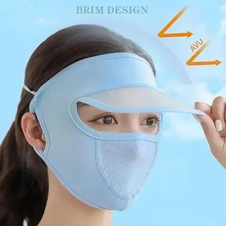 This women’s full face sun protection cap is designed for maximum outdoor defense, combining a soft cotton-polyester cap, a wide-brim visor, and an integrated breathable face mask in one convenient solution. Whether you’re exposed to intense sunlight, dust, or air pollutants, this cap offers complete face coverage, including forehead, eyes, nose, and cheeks, without compromising comfort.